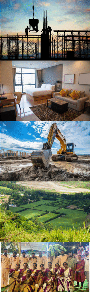 Kanakath Group is a multi-disciplinary service provider based in Wayanad, Kerala, committed to excellence in construction, earthmoving, tours & travels, homestays, dance programs, and real estate support. Our goal is simple to deliver dependable, quality-driven services that cater to both your structural and cultural needs. With a legacy of trust and a forward-thinking team, we aim to build more than just projects we build relationships.